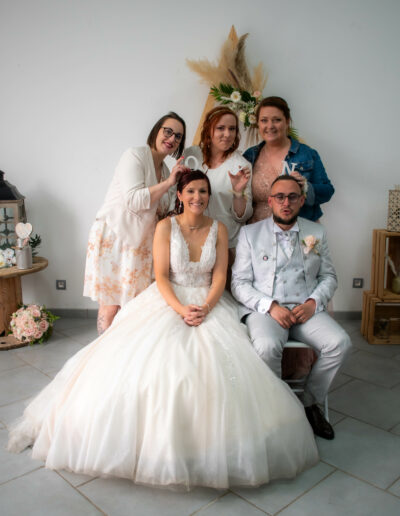 Je vous suggère des exemples de tenues à apporter pour la séance : petit top brodé, chemisier blanc ou rose pasteil, robe longue, maillot de bain coloré si vous voulez faire des photos dans l’eau, …Au delà des vêtements, vous pouvez apporter divers accessoires pour vos photos entre copines. L’idée est de dynamiser la photo, d’apporter de la couleur. Pour cela je vous conseille les bijoux fantaisie, bandeau, t-shirt personnalisés, tatouages de la mariée …